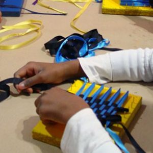 Visitarem l’exposició de la indústria tèxtil/cinteria i en acabar, amb l’ajuda d’uns petits telers manuals aprendrem els conceptes bàsics sobre el teixit: la trama, l’ordit,